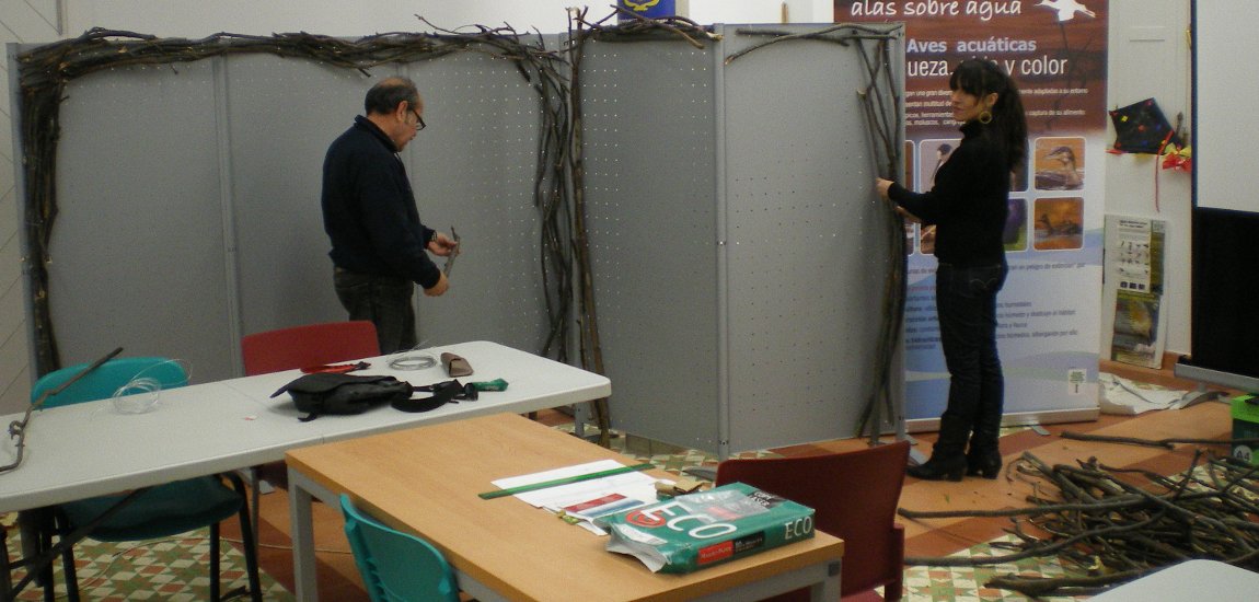 Calisto y María Martín montando la exposición.
