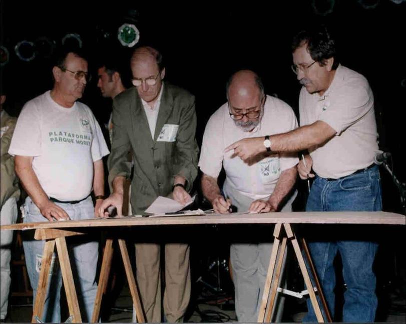 Representantes de la plataforma Parque Moret y todos los grupos políticos municipales firman el acuerdo del Pulmón Verde de Huelva.